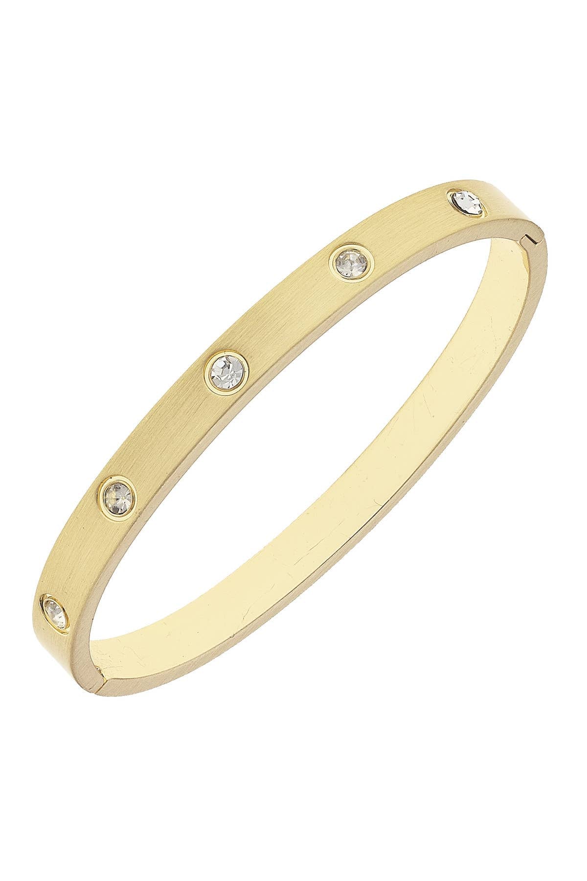 Lorraine Rhinestone Hinge Bangle in Satin Gold